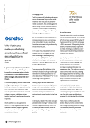 · 34 · Vol 0ne ® A changing world Today’s commercial landlords and business owners have several things on their mind. After more than two years of pandemic- related uncertainty, they were plunged into a world of high interest rates and inflation. This has an obvious impact on spending plans and the need for greater efficiency in building management systems. But the cost-of-living crisis has also led to increased concerns about economically driven crime. Many industry executives have cited an increase in physical security threats in recent years. At the same time, the pandemic left an indelible mark on the way we live and work. According to one study, nearly three-quarters (72%) of UK employers offer flexible working for their corporate employees, with just 28% requiring staff to be in the office full time. Those managing office buildings in this new world of hybrid working need the right information to answer questions like “on which days is our office busiest?” or “do we have enough parking spaces?”. Industry players are also under more pressure than ever to meet and go beyond energy efficiency standards, to satisfy tenants and shareholders of their ESG credentials. Doing so can also have a positive impact on cost control in the long run. And they must do all of this while managing persistent skills shortages—at least, when it comes to physical security. Some 70% of channel partners Genetec polled last year expect staffing challenges to increase globally. 72% of UK employers offer flexible working. No time for legacy The good news is that, despite persistent macroeconomic headwinds, we found that 62% of end users expect OPEX budget for physical security to remain flat or increase in 2024, versus just 15% expecting it to fall. However, where this money is spent will be critical. Investing in a collection of on- premises point solutions may create more problems than it solves. Typically, legacy solutions for video surveillance, access control, automatic number plate recognition (ANPR), and intrusion detection are proprietary and closed, creating information and management silos. This limits how security teams connect and share data, creating security gaps and time-consuming, costly processes. It also restricts organisations’ ability to scale and future-proof their physical security infrastructure. Imagine a physical security system comprised of multiple siloed solutions, generating multiple alarms. Without an overarching management platform to unify them, the right people would not have access to the right alerts at the right time. This is where a unified solution like Genetec Security Center comes into its own, intelligently pulling data from a range of sources and presenting actionable information to users via a single intuitive dashboard. Smart Spaces Why it’s time to make your building smarter with a unified security platform By Viet Tang Genetec Legacy security systems may have been effective a decade ago. But they’re no longer fit-for-purpose at a time of rising cost pressures, sustainability concerns, skills shortages and physical and cyber- threats. Commercial property owners need a more intelligent way to protect their people, buildings and assets from physical security risks. This starts with deploying a unified security system that connects your security systems, sensors, and data in a single intuitive interface for analysis and proactive response. Such a platform can also go beyond security—to help organisations drive new operational benefits, support regulatory compliance, and even strengthen sustainability initiatives.